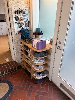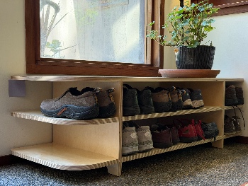 A custom shoe rack for entryways and mudrooms with space for shoes, boots, and everyday drop-zone storage, sized to fit your home.