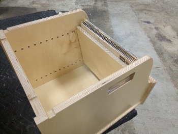 An adjustable panel lets you bring records to the front as your collection changes, so they stay easy to reach instead of disappearing into the back of the drawer.