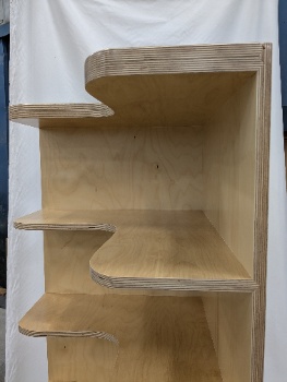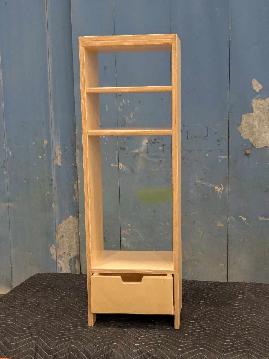 Shelf.me pieces are built from 3/4-inch Baltic birch hardwood plywood, pre-finished for durability, and detailed with a sanded, low-VOC finish on exposed end grain.